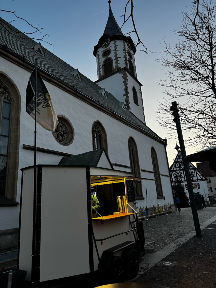 Mit unserem Anhänger waren wir beim Weihnachtsdörfle auf dem Pfullinger Marktplatz zu Gast. Die Besucher genossen Hot Aperol, Berg Weihnachtsbier und warmen Punsch, während wir gemeinsam mit Rosenkranz und Beim Südtiroler für eine gemütliche Atmosphäre sorgten.